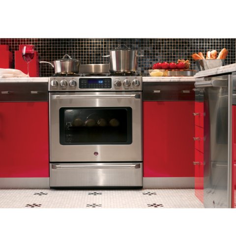 - GE Cafe Series C2S985SETSS 30 Freestanding Dual Fuel Range 54 cu ft Oven Capacity with 5 Sealed Burners 20000 BTU TriRing Burner Convection Cooking NonStick Griddle and Baking DrawerC2S980SEMSS